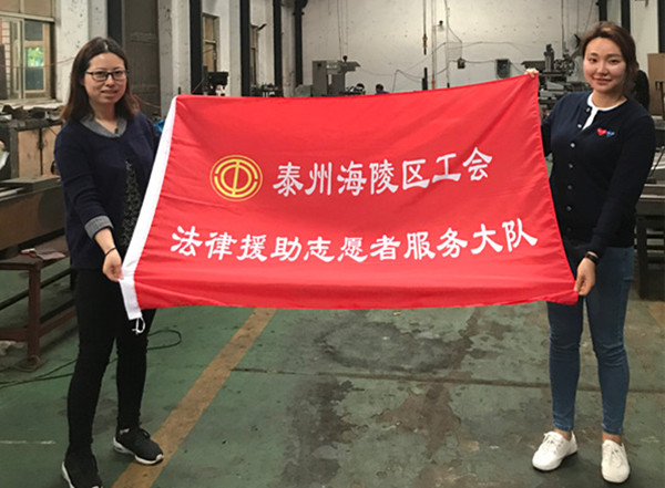 今年是“七五”普法的关键之年,也是喜迎十九大的重要一年,针对经济转型升级、供给侧结构性改革给职工队伍稳定带来的新情况新挑战,劳动关系矛盾呈现的新特点新趋势,海陵区总工会集中开展“法律在身边,和谐伴你行”阳光快车法律集中服务月活动,走进企业一线,为企业和职工,特别是农民工、劳务派遣工,送法律、送咨询、送服务,增强企业主和劳动者的法治观念和法治意识,形成学法尊法守法用法的良好氛围,促进社会和谐稳定。5月4日下午,海陵区总工会走进泰州市苏中有限公司等企业,为一线职工送上职工学法百问小册、工会劳动保护手册等法律宣传资料,现场解答职工法律困惑,切实促进和维护职工权益。活动月期间,海陵区总工会还将开展送法律进工地、劳动法律监督等活动,进一步增强广大职工依法维权的意识,提高依法维权能力素质,促进企业依法规范用工,为构建和谐社会营造良好氛围。